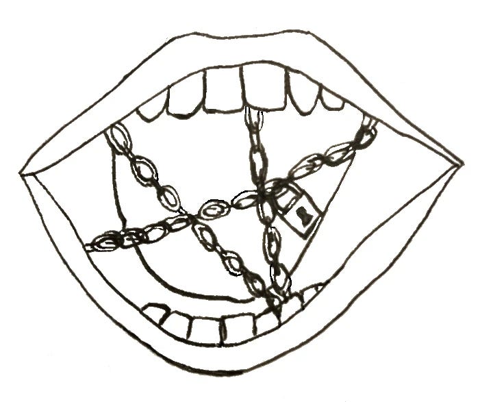 My body mars and silences my expression, my enthusiasm for life. That is how it felt for most of my child and young adulthood, that is how it still feels now, sometimes. Even though I kept my self-esteem during those early years, I was learning to be silent. I was learning to hold my tongue. My tongue was holding itself captive as it disobeyed my brain’s messages to form certain sounds. (This may not be an accurate representation of what is going on neurologically during a stutter, but it is what it felt like to me.)